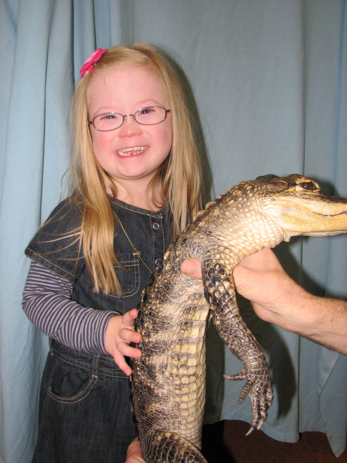 Ella standing next to Hunter and Lucy. She freaked out and wouldn't hold it. The Reptile Guy was so sweet. He actually brought the alligator up to Ella right after the show so she could pet it, and was so sweet to Ella and talked to her for quite a bit!
